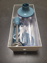 また、ホイッパーやブレンダースティックを使うときのためのメモリの付いた細長いプラスティックの容器も一緒についています。